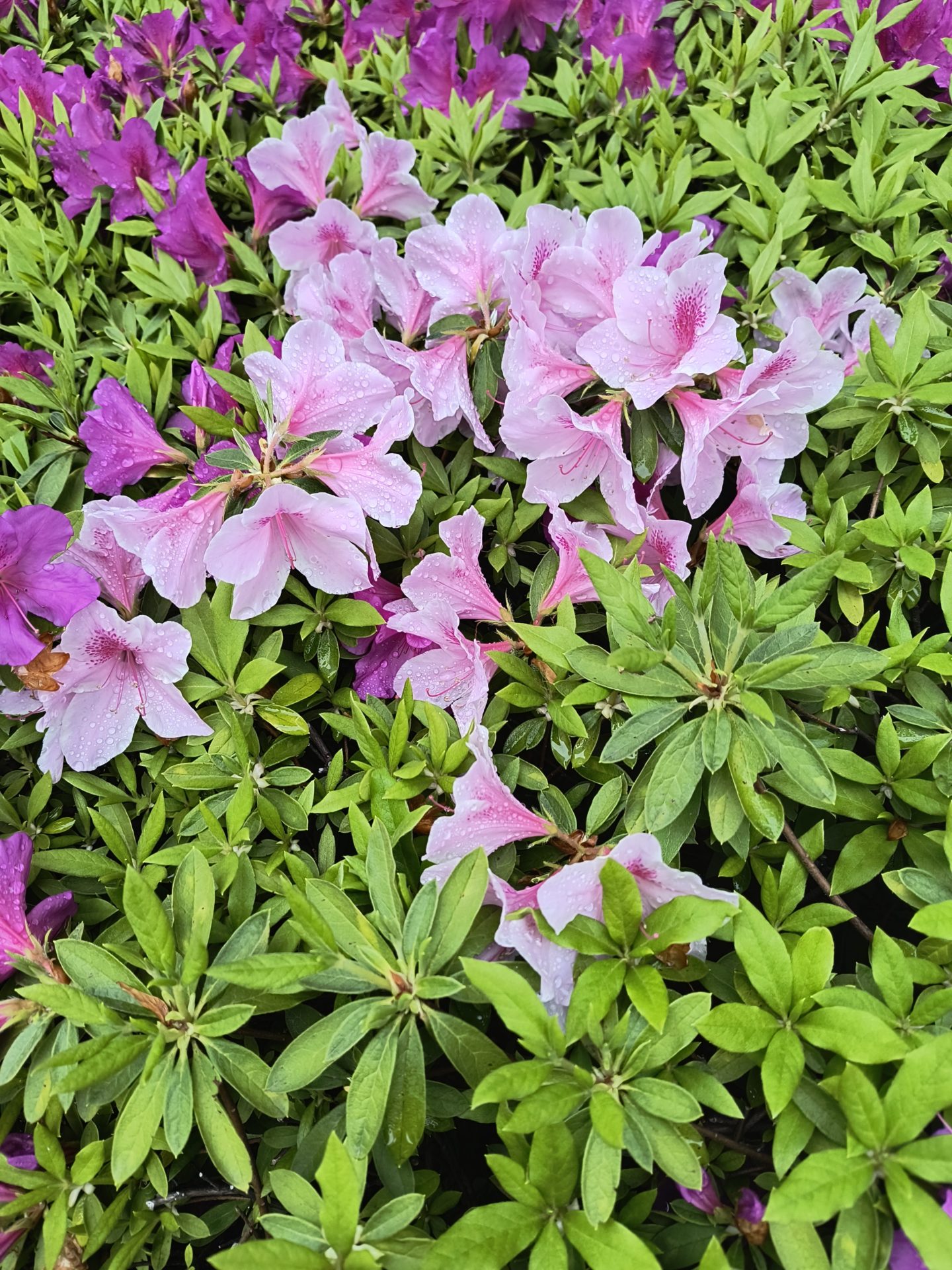 つつじもサツキもツツジ科ツツジ属の植物で、見た目と咲く時期に違いがあるらしい。つつじの開花時期は4月~5月頃(ちょうど今ですね)、サツキは5月下旬~6月頃に咲くらしい、葉っぱの大きさと花の大きさにも違いがある様です。